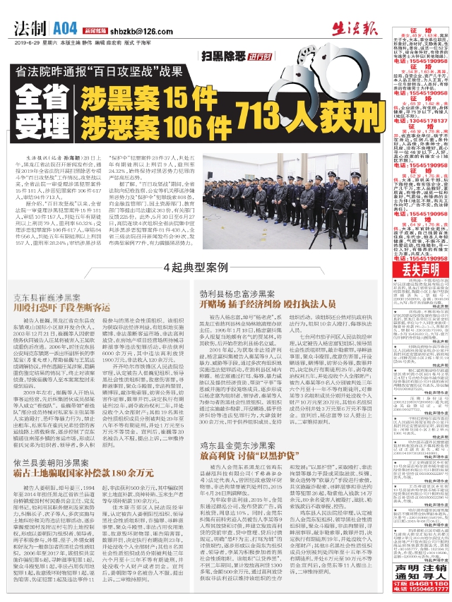 全省受理涉黑案15件涉恶案106件713人获刑