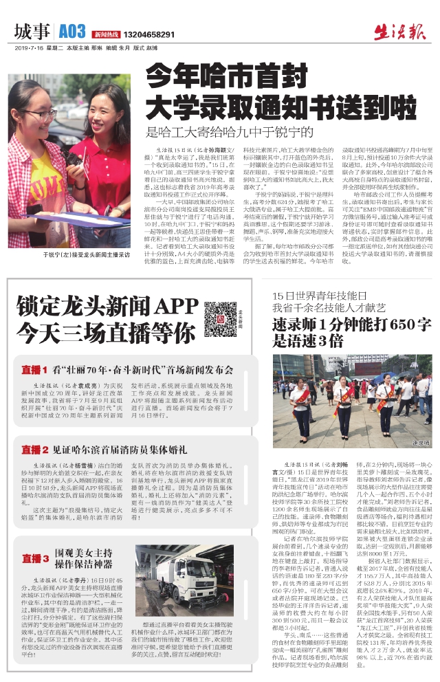 今年哈市首封大学录取通知书送到啦