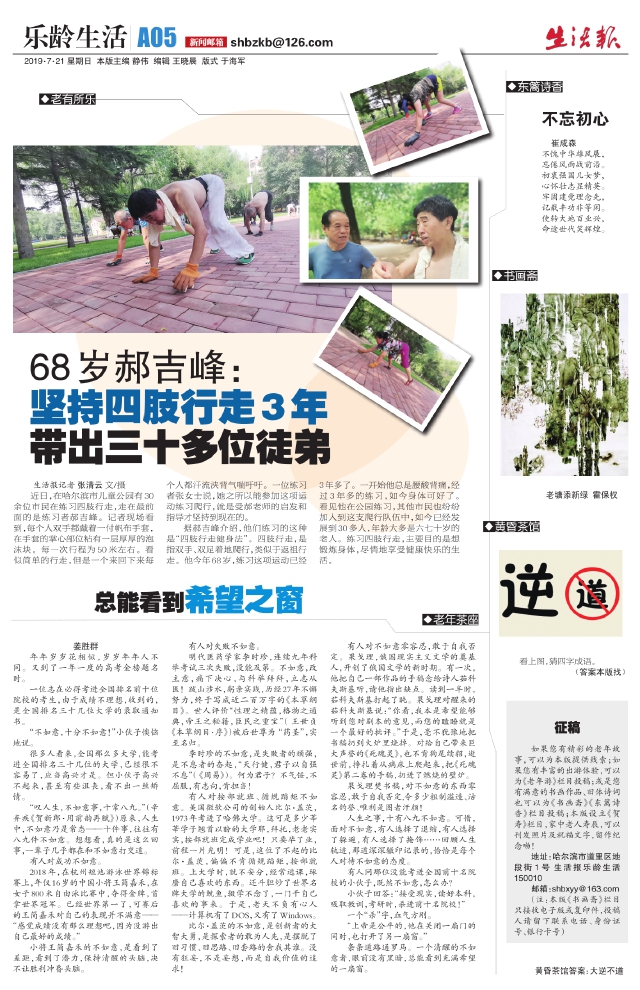 68岁郝吉峰:坚持四肢行走3年带出三十多位徒弟