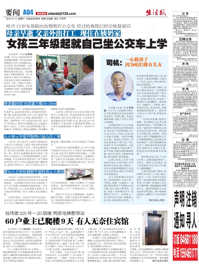 母亲早逝父亲外出打工现住在姨奶家女孩三年级起就自己坐公交车上学