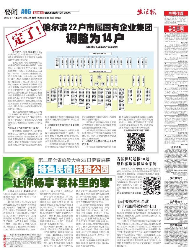 定了!哈尔滨22户市属国有企业集团调整为14户
