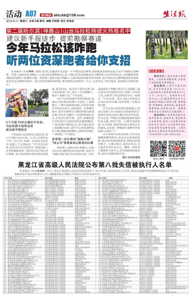 黑龙江省高级人民法院公布第八批失信被执行人名单