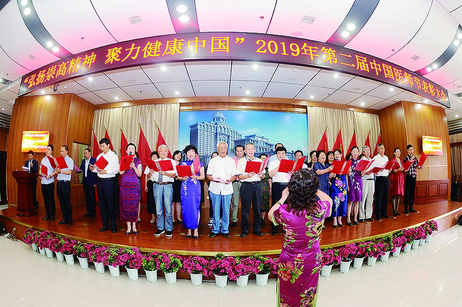 生活报讯(记者霍营)15日下午,哈医大四院举办“弘扬崇高精神,聚力健康中国”2019年第二届中国医师节表彰大会。 大会表彰奖励了一批优秀医师代表,其中,表彰“特别贡献专家”11人,“医疗先进骨干”94人,“医疗援助先进”14人。此次受表彰的医生中,有多年来兢兢业业为医院发展做出贡献的专家,也有奋发向上业务拔尖的青年医师,更有始终坚守医者初心,克服种种困难,在援疆援藏中传播新技术、新理念,帮助落后地区提高医疗技术和服务水平的白衣天使。普外科援藏医师魏九峰作为医疗援助先进代表做了事迹报告,妇科韩世愈主任作为医师代表做了报告。 哈医大四院徐万海院长说,医师节,不只是设立,更多是传承;医师节,不只是庆祝,更多是责任。他号召广大医师学习接受表彰的先进榜样,不断激发医师职业荣誉感和神圣使命感,为医院发展献计献策、贡献力量。最后,医院专家代表,骨干医师代表及获奖代表共同组成合唱团,上台大合唱歌曲《我们走在大路上》,共同庆祝属于医师的节日。