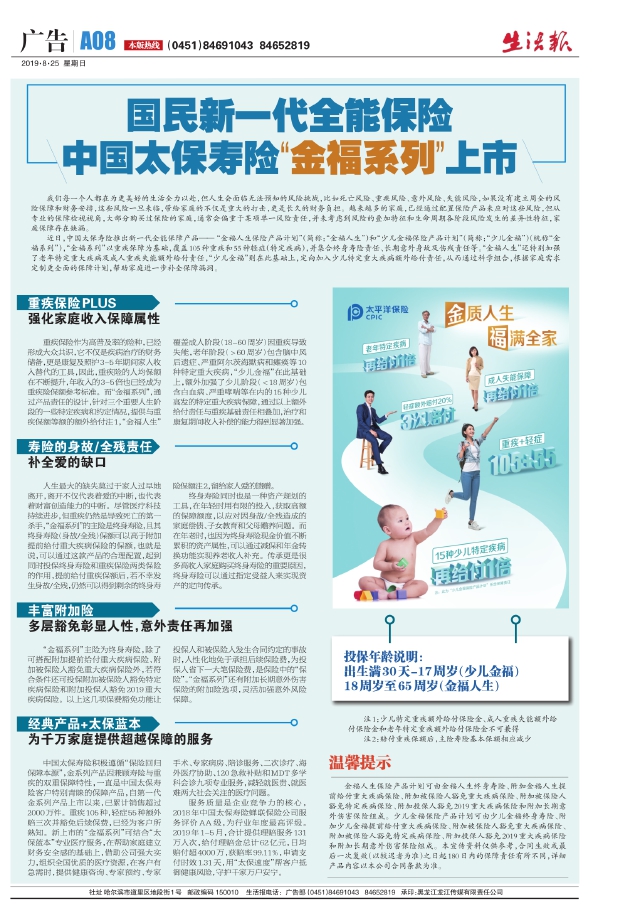 国民新一代全能保险中国太保寿险“金福系列”上市