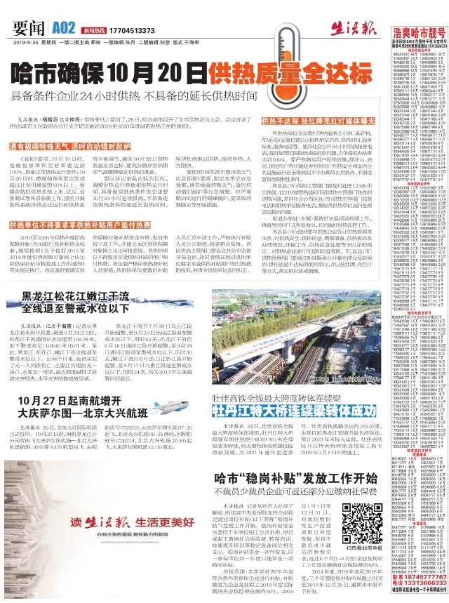 黑龙江松花江嫩江干流全线退至警戒水位以下