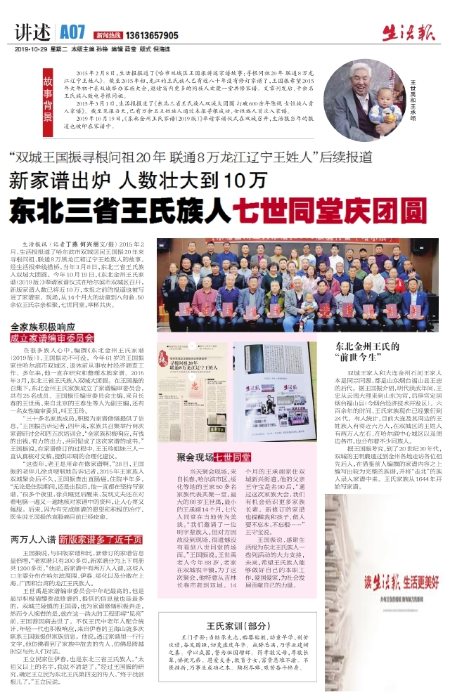 新家谱出炉人数壮大到10万东北三省王氏族人七世同堂庆团圆