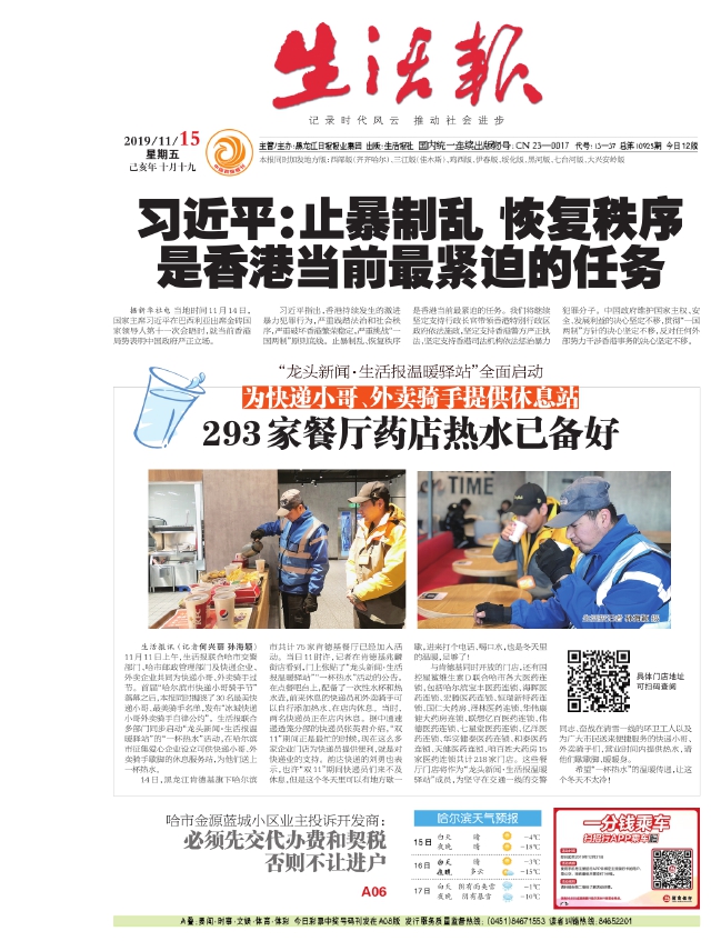 为快递小哥、外卖骑手提供休息站 293家餐厅药店热水已备好