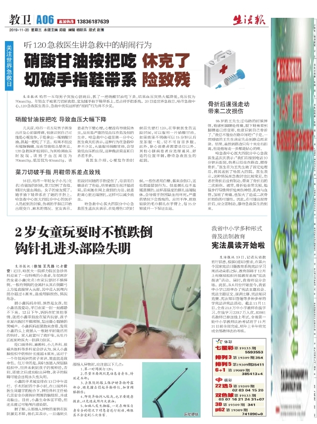 硝酸甘油按把吃休克了切破手指鞋带系险致残