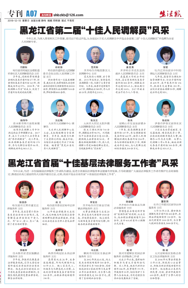 黑龙江省首届“十佳基层法律服务工作者”风采