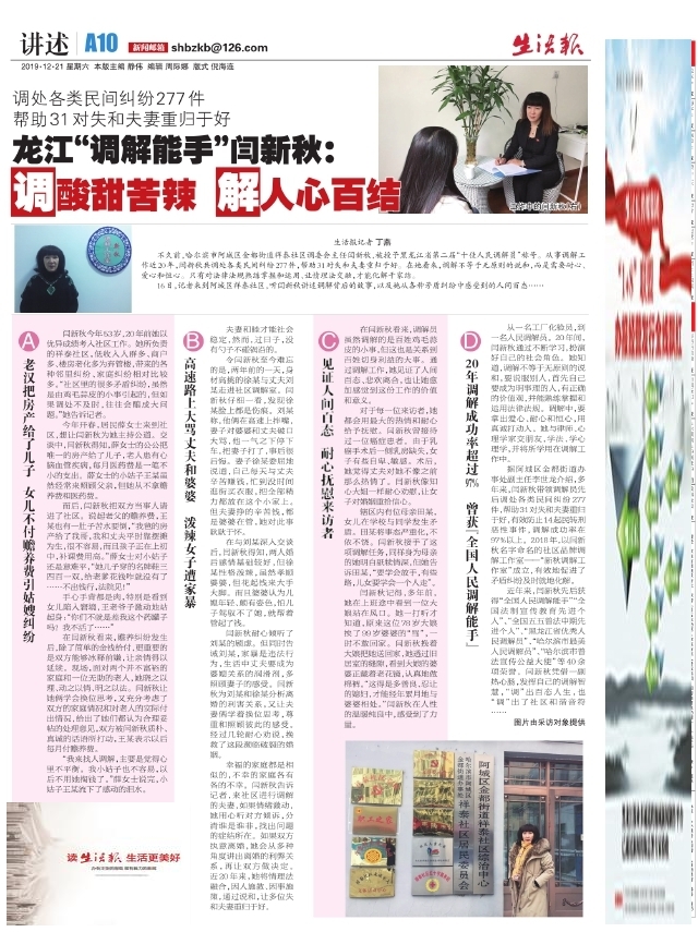 龙江“调解能手”闫新秋:调酸甜苦辣解人心百结