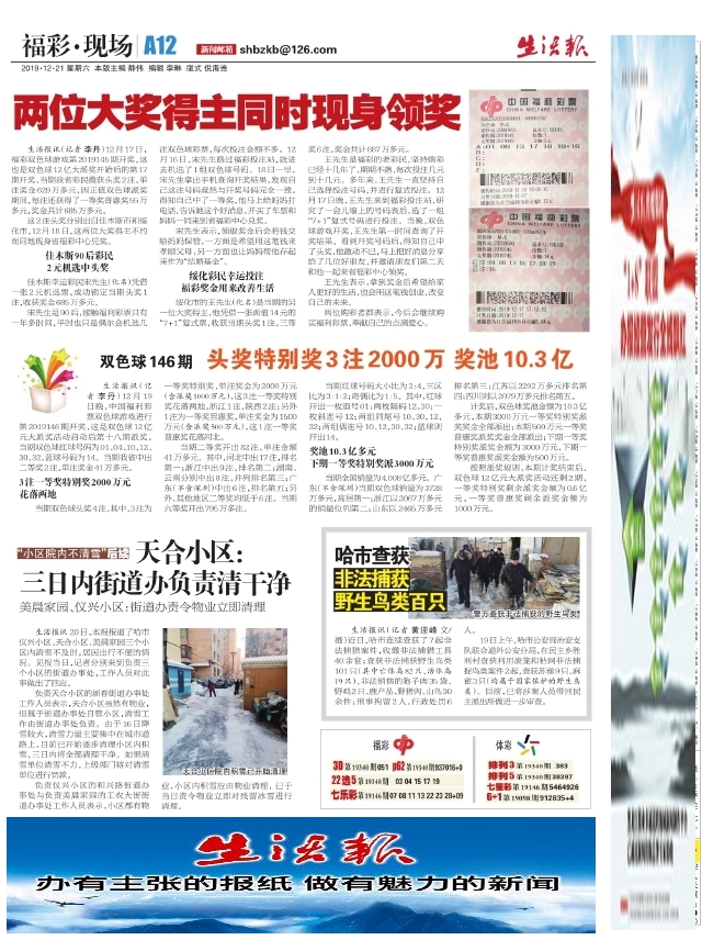 双色球146期头奖特别奖3注2000万奖池10.3亿