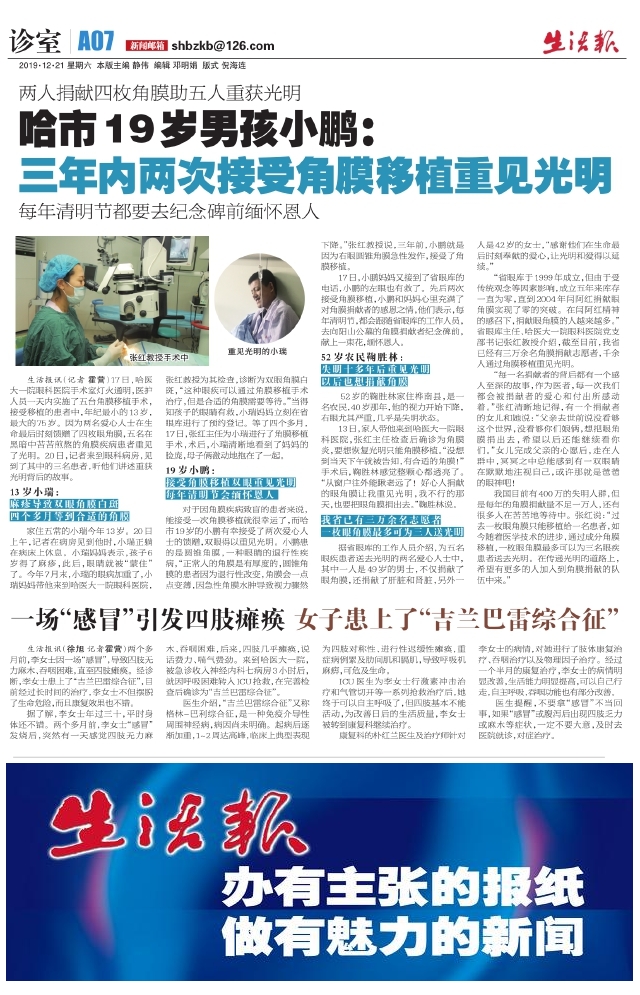 哈市19岁男孩小鹏:三年内两次接受角膜移植重见光明
