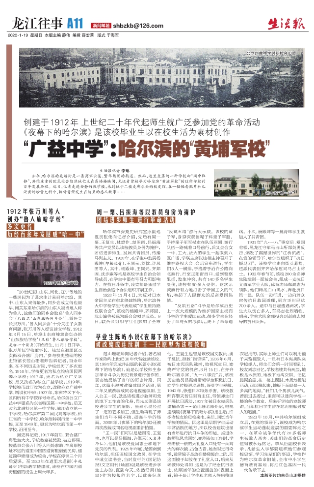 “广益中学”:哈尔滨的“黄埔军校”