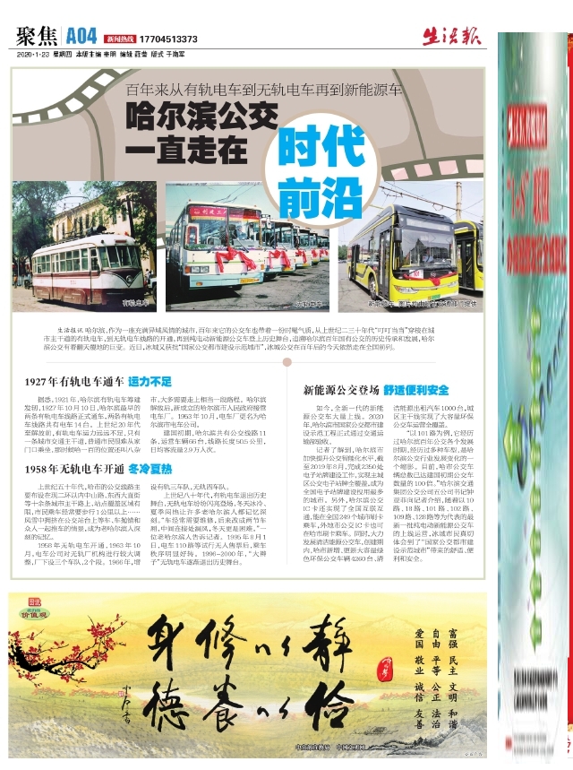 生活报讯哈尔滨,作为一座充满异域风情的城市,百年来它的公交车也带着一份时髦气质,从上世纪二三十年代“叮叮当当”穿梭在城市主干道的有轨电车,到无轨电车线路的开通,再到纯电动新能源公交车登上历史舞台,追溯哈尔滨百年国有公交的历史传承和发展,哈尔滨公交有着翻天覆地的巨变。近日,冰城又获批“国家公交都市建设示范城市”,冰城公交在百年后的今天依然走在全国前列。 1927年有轨电车通车运力不足 据悉,1921年,哈尔滨有轨电车筹建发轫,1927年10月10日,哈尔滨最早的两条有轨电车线路正式通车,两条有轨电车线路共有电车14台。上世纪20年代至解放前,有轨电车运力远远不足,只有一条城市交通主干道,普通市民很难从家门口乘坐,那时候哈一百的位置还叫八杂市,大多需要走上相当一段路程。哈尔滨解放后,新成立的哈尔滨市人民政府接管电车厂。1953年10月,电车厂更名为哈尔滨市电车公司。 建国初期,哈尔滨共有公交线路11条,运营车辆66台,线路长度50.5公里,日均客流量2.9万人次。 1958年无轨电车开通冬冷夏热 上世纪五十年代,哈市的公交线路主要布设在现二环以内中山路、东西大直街等十余条城市主干路上,站点覆盖区域有限,市民乘车经常要步行1公里以上……风雪中拥挤在公交站台上等车、车抛锚和众人一起推车的情景,成为老哈尔滨人深刻的记忆。 1958年无轨电车开通,1963年10月,电车公司对无轨厂机构进行较大调整,厂下设三个车队,2个段。1966年,增设有轨三车队,无轨四车队。 上世纪八十年代,有轨电车退出历史舞台,无轨电车纷纷闪亮登场,冬天冰冷、夏季闷热让许多老哈尔滨人都记忆深刻。“车经常需要维修,后来改成两节车厢,中间连接处漏风,冬天更是困难。”一位老哈尔滨人告诉记者。1995年8月1日,电车110路等试行无人售票后,乘车秩序明显好转。1996-2000年,“大辫子”无轨电车逐渐退出历史舞台。 新能源公交登场舒适便利安全 如今,全新一代的新能源公交车大量上线。2020年,哈尔滨市国家公交都市建设示范工程正式通过交通运输部验收。 记者了解到,哈尔滨市加快提升公交智能化水平,截至2019年8月,完成2350处电子站牌建设工作,实现主城区公交电子站牌全覆盖,成为全国电子站牌建设投用最多的城市。另外,哈尔滨公交I C卡还实现了全国互联互通,能在全国249个城市刷卡乘车,外地市公交I C卡也可在哈市刷卡乘车。同时,大力发展清洁能源公交车,创建期内,哈市新增、更新大容量绿色环保公交车辆4260台、清洁能源出租汽车1000台,城区主干线实现了大容量环保公交车运营全覆盖。 “以101路为例,它经历过哈尔滨百年公交各个发展时期,经历过多种车型,是哈尔滨公交行业发展变化的一个缩影。目前,哈市公交车辆总数已达建国初期公交车数量的100倍。”哈尔滨交通集团公交公司五公司书记钟亚菲向记者介绍,随着以10路、18路、101路、102路、109路、128路等为代表的最新一批纯电动新能源公交车的上线运营,冰城市民真切体会到了“国家公交都市建设示范城市”带来的舒适、便利和安全。