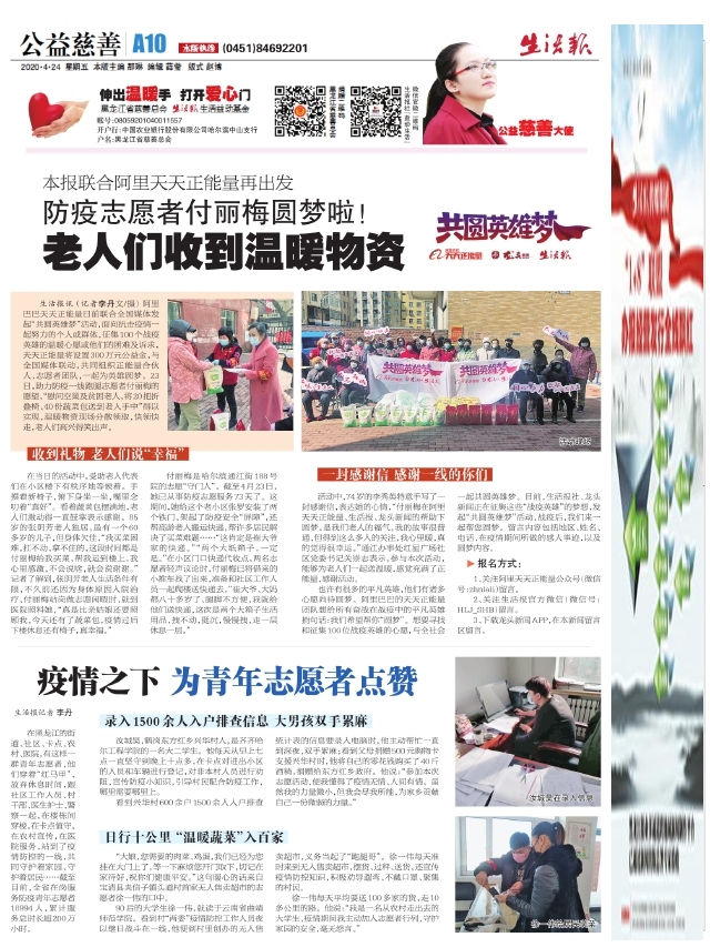 防疫志愿者付丽梅圆梦啦!老人们收到温暖物资