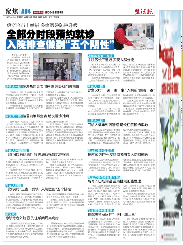 全部分时段预约就诊入院排查做到“五个阴性”