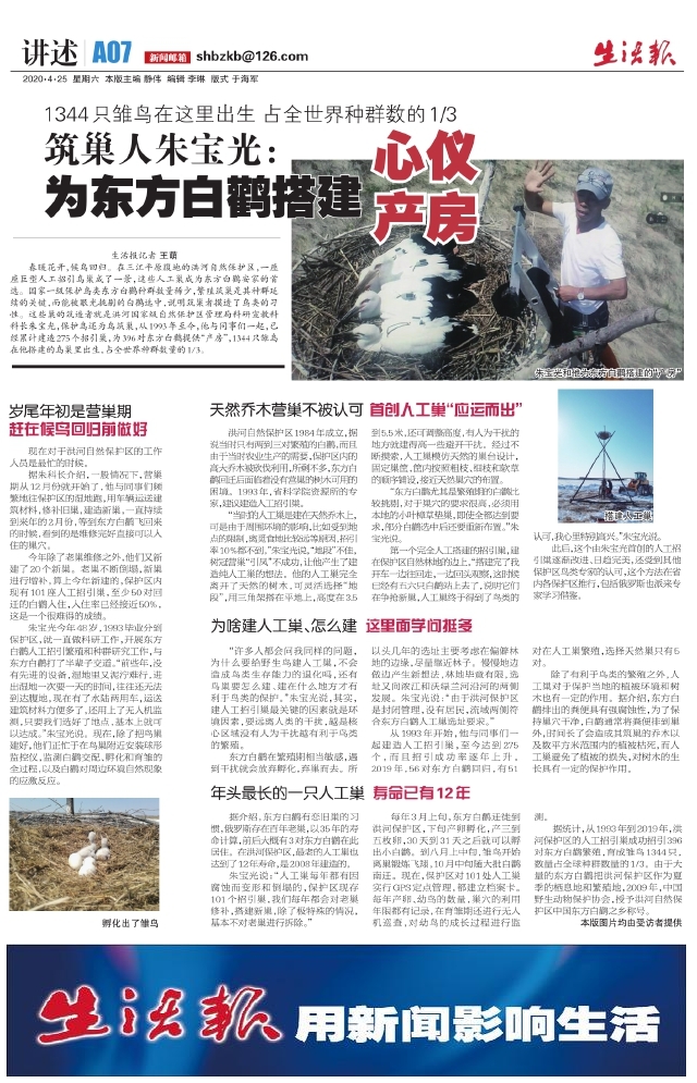 筑巢人朱宝光:为东方白鹳搭建心仪产房