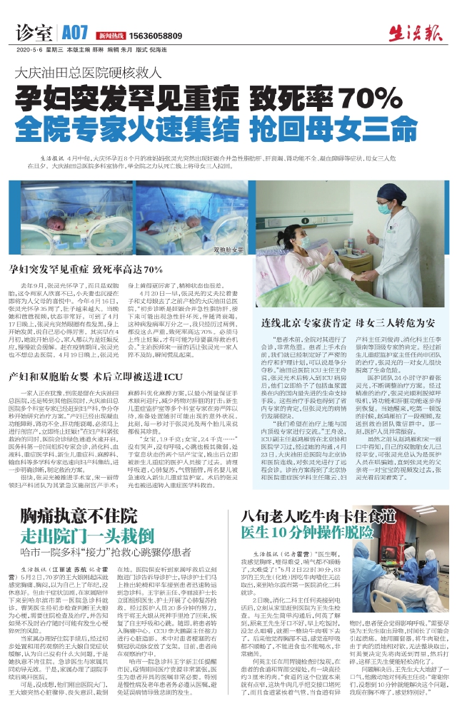 孕妇突发罕见重症致死率70%全院专家火速集结抢回母女三命