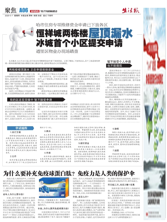 恒祥城两栋楼屋顶漏水 冰城首个小区提交申请