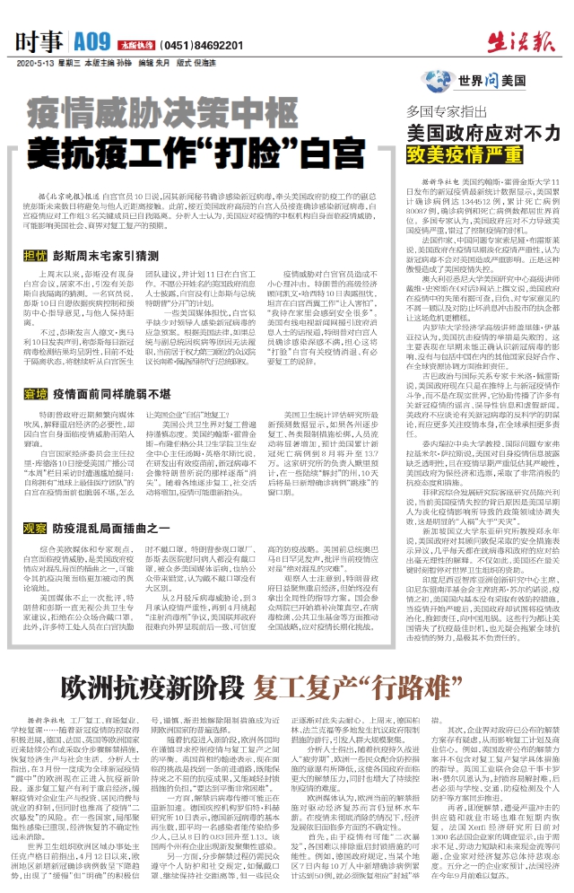 疫情威胁决策中枢美抗疫工作“打脸”白宫
