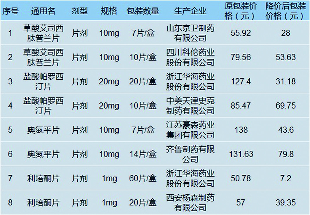 生活报讯记者从省医疗保障局了解到,随着我省推动招采制度改革,药品降价品种范围再扩大,一些精神类药物大幅降价。记者了解到治疗精神分裂等精神类疾病的常用药奥氮平降幅超68%。 据介绍,此次药品降价中,抗抑郁药物盐酸帕罗西汀片由6.37元/片降至1.56元/片,降幅达75%,抗精神病药物利培酮片由0.84元/片降至0.12元/片,降幅达85%,显著减轻患者的心理负担和经济负担。 记者了解到,此次降价药品中有奥氮平,规格为7片/盒,原价138元,降价后43.6元,降幅超68%。这种药物是治疗精神分裂等精神类疾病的常用药,很多患者需要服用3到5年,甚至是终身用药。