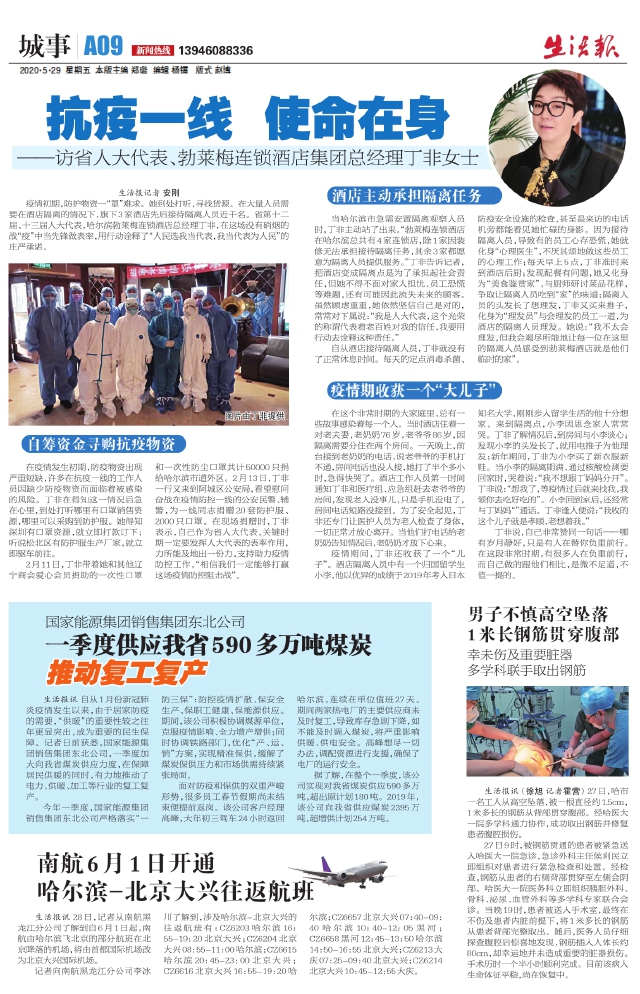 南航6月1日开通哈尔滨-北京大兴往返航班