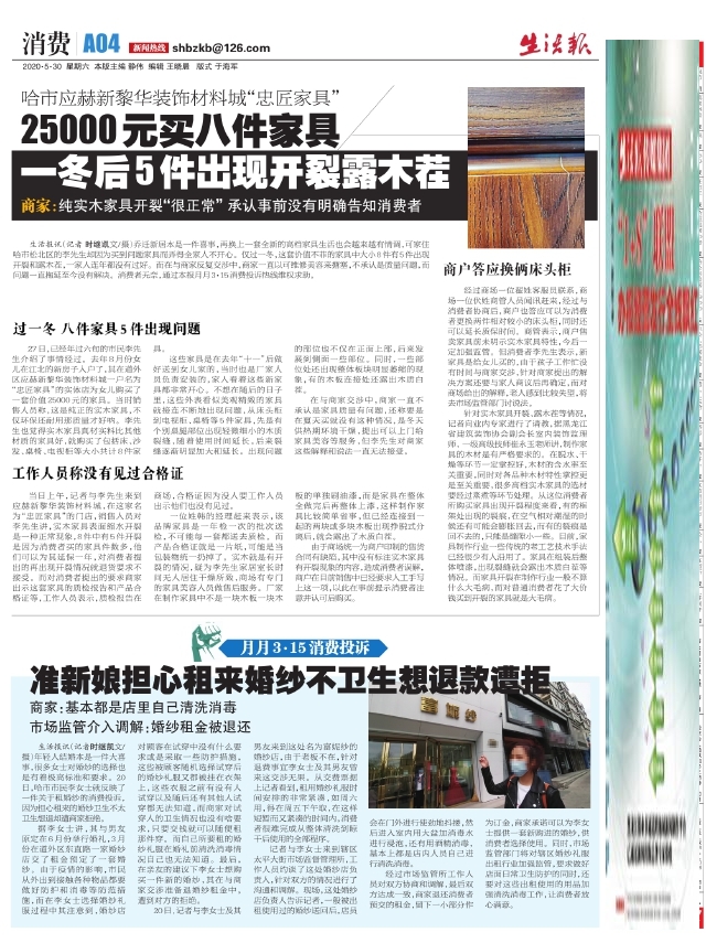 25000元买八件家具一冬后5件出现开裂露木茬