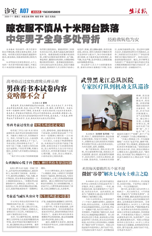 晾衣服不慎从十米阳台跌落中年男子全身多处骨折
