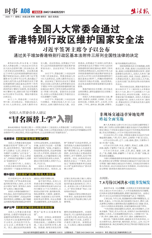 全国人大常委会通过香港特别行政区维护国家安全法