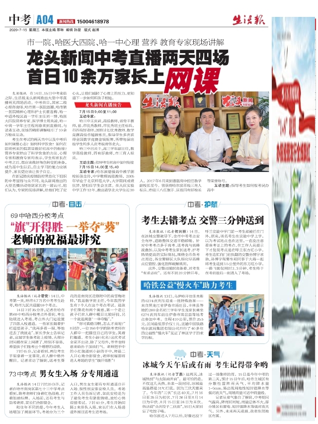 龙头新闻中考直播两天四场首日10余万家长上网课