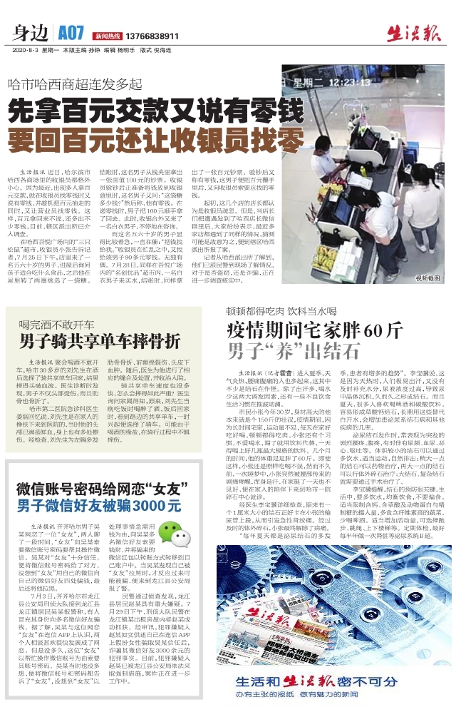 先拿百元交款又说有零钱要回百元还让收银员找零