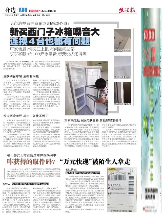 新买西门子冰箱噪音大连换4台也都有问题