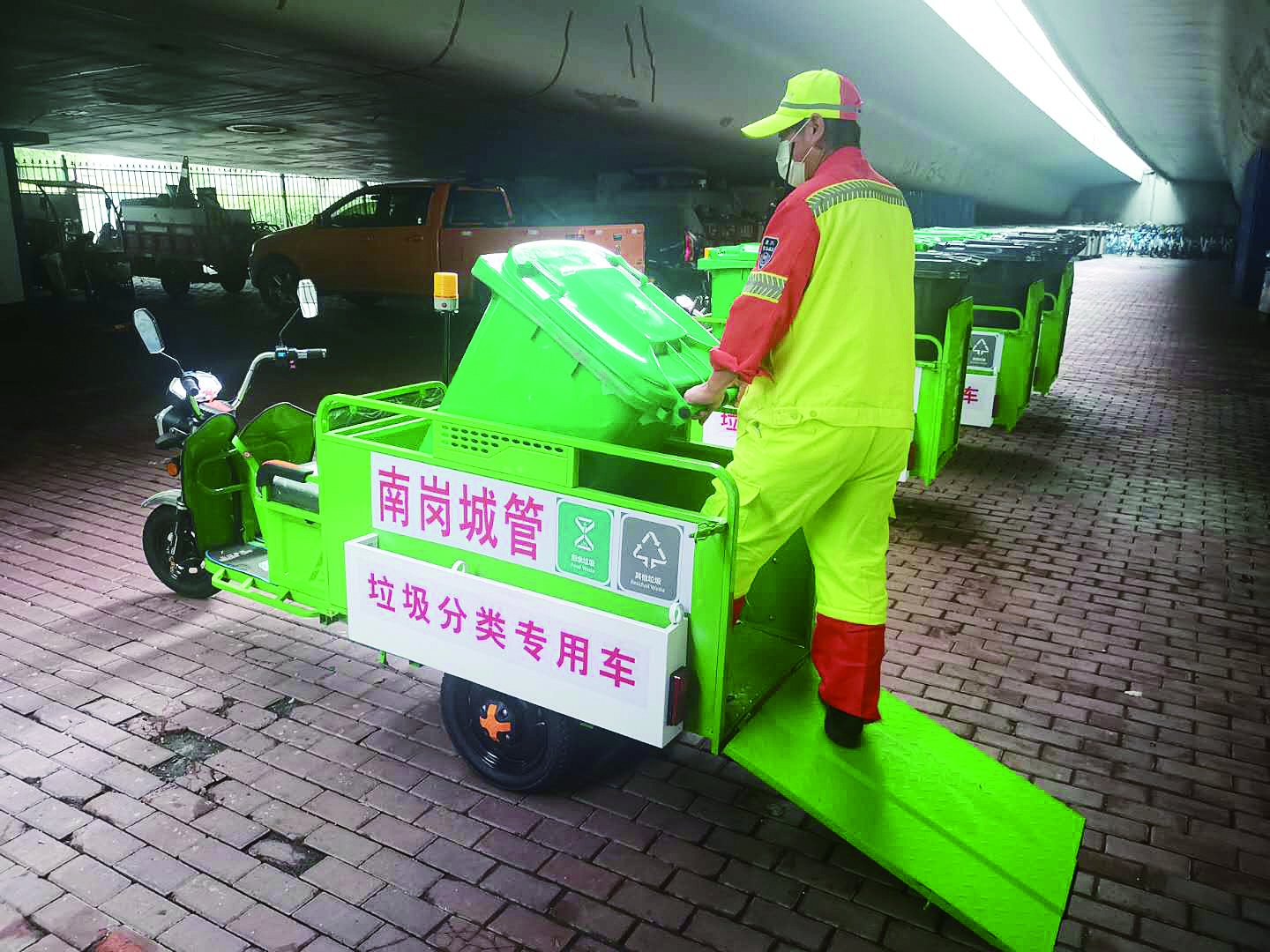 生活报讯为加速推进生活垃圾源头分类,近日,哈市南岗区城管局结合清扫保洁作业实际,购置11台新式生活垃圾分类收集转运电动车,用于临街商家厨余垃圾和其他垃圾的专项收运。 据了解,此次投入使用的新式生活垃圾分类收集转运电动车主要用于临街商家厨余垃圾和其他垃圾的专项收运。每台电动车上可配置厨余垃圾和其他垃圾分类桶各一个,容量分别为240升,保洁人员在装运过程中会对收运垃圾进行二次分拣,每辆车日均收运量约1000公斤。同时,南岗区在垃圾转运站内增设垃圾桶,保洁人员可在转运站内更换垃圾桶,实现全天候循环作业。