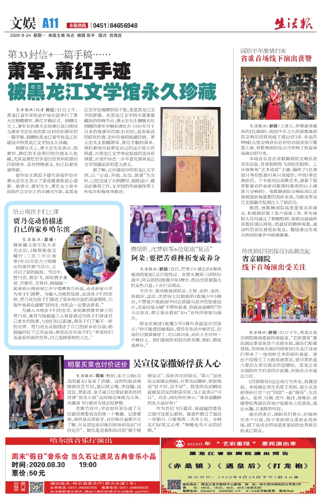 萧军、萧红手迹被黑龙江文学馆永久珍藏