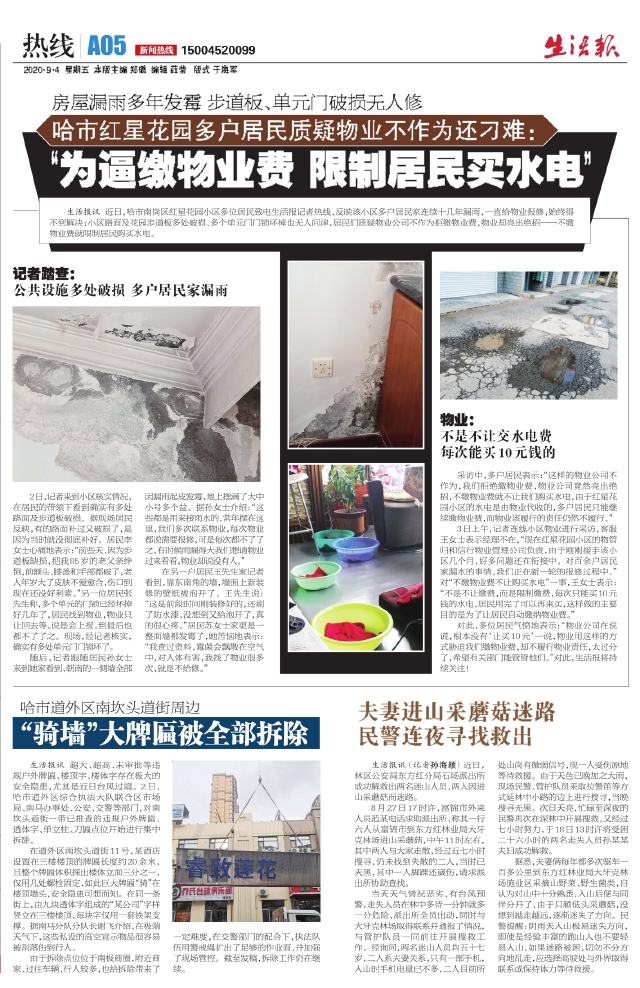 哈市红星花园多户居民质疑物业不作为还刁难:“为逼缴物业费限制居民买水电”
