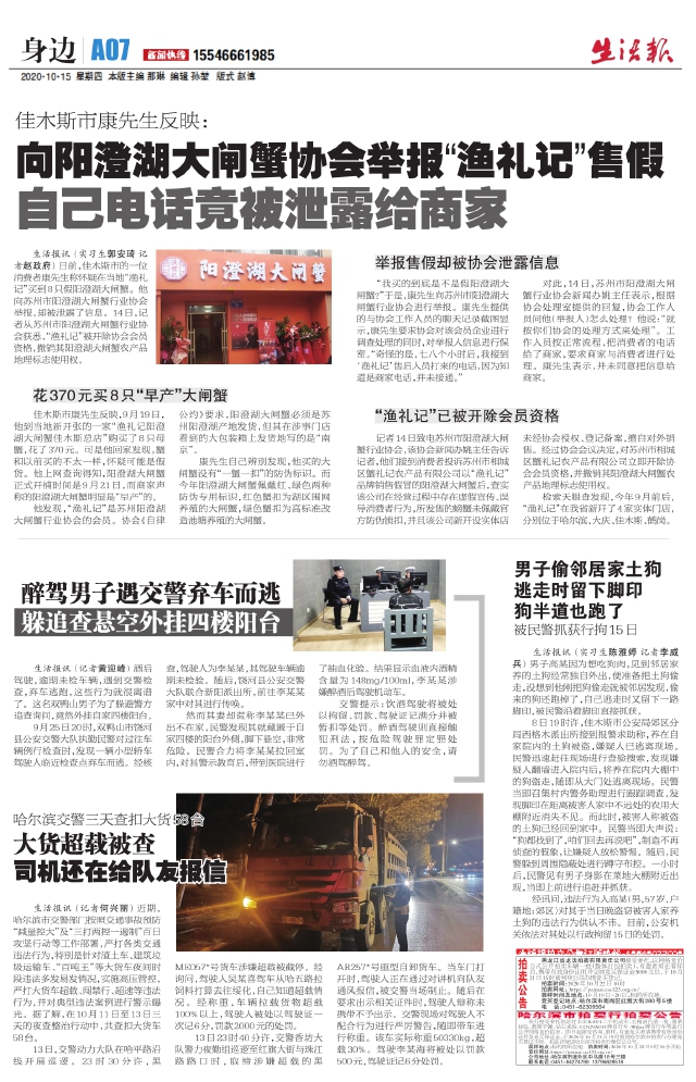 向阳澄湖大闸蟹协会举报“渔礼记”售假自己电话竟被泄露给商家