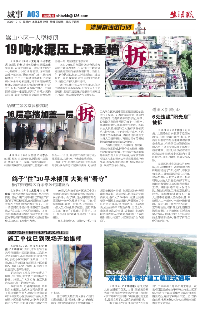 道里区新城小区6处违建“阳光房”被拆