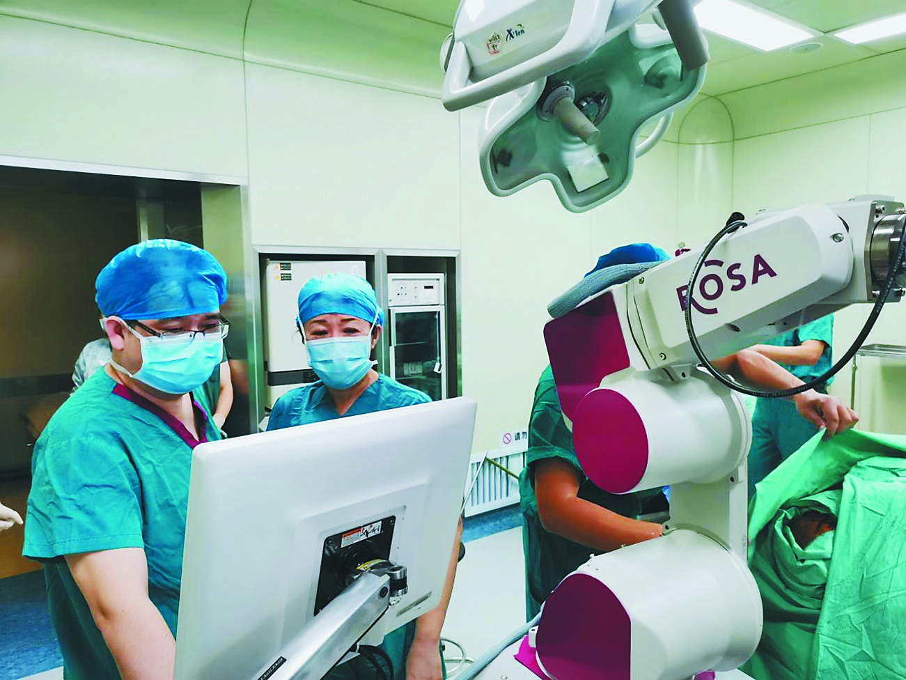生活报讯(徐旭记者霍营)近日,哈医大一院神经外科四病房接收了一名每天腹部流淌300毫升积液的女子。经检查,原来她积液的“源头”在脑里。 今年3月,50岁的杨女士腹部逐渐膨隆,腹围也增大了,起初她以为是胖的,便没在意。6月,杨女士开始出现频繁的腹痛,肚子膨隆得更加明显了,就医检查后被确诊为腹腔积液,并且发现腹腔囊肿。她接受了开腹腹腔囊肿切除术,术后没多久,杨女士腹腔积液又出现了。之后的两个月,她的腹腔积液症状越来越严重,9月初,杨女士又接受了腹腔积液的外引流手术。 杨女士来到哈医大一院神经外科四病房治疗的时候,一直戴着腹腔积液的体外引流袋,每天300毫升左右的液体流出,约相当于一听可乐那么多。神经外科沈红教授认为要想解决杨女士腹腔积液的问题,找到引起腹腔积液的原因最为关键。 经过实验,发现杨女士腹腔积液的来源,是脑脊液。原来,21年前杨女士进行了脑囊肿切除手术,术后20天继发脑积水,为解决脑积水,医生为她做了脑室腹腔分流手术。通过分流泵和导管,将脑脊液引流到腹腔中。2016和2017年,杨女士的脑囊肿复发,先后又做了两次手术。由于杨女士腹膜的吸收能力下降,无法吸收分流过来的脑脊液,这才导致了腹腔积液。也就是说,杨女士腹部每天排出的300毫升积液实际是脑脊液。 经过讨论,神经外科四病房林志国主任和沈红决定,利用ROSA机器人辅助进行侧脑室上矢状窦分流术,实现脑脊液正常的生理循环。术后,杨女士状态良好,摘掉了体外腹腔积液引流袋,顺利出院。