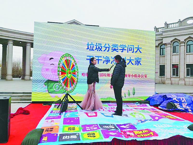 生活报讯(记者李丹文/摄)近日,由哈尔滨市生活垃圾分类领导小组办公室主办,香坊区垃圾分类办协办的“垃圾分类新时尚·城市文明我践行”主题宣传活动陆续走进香坊区家乐福民生店、恒大中央公园、香远溢清广场等地。 玩垃圾分类飞行棋、垃圾分类幸运大转盘、垃圾分类丢沙包……在各个活动现场,市民们纷纷驻足,参与到游戏中来。“我通过游戏学会了很多垃圾分类的知识,还得了环保塑料袋、垃圾桶等奖品。”在香远溢清广场,一名参与游戏的市民表示,只有垃圾分类,才能变废为宝,让环境更美丽。