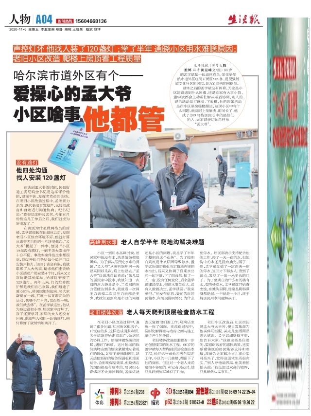 哈尔滨市道外区有个——爱操心的孟大爷小区啥事他都管