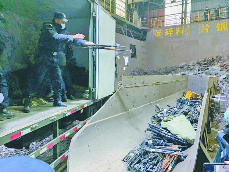 生活报讯(实习生郝天朔尤纪肖记者黄迎峰文/摄)11月17日9时,一支支、一捆捆仿制式枪以及猎枪、火药枪、气枪,在哈尔滨市建龙阿城钢铁有限公司被投入炼钢炉,宣告了2020年全国公安机关集中统一销毁非法枪爆物品活动正式启动。此次活动全省共销毁公安机关收缴的非法枪支和报废枪支7600余支,一大批社会治安隐患得到消除。 今年以来,全省共查处涉枪案件(私藏,非法持有,制造、销售仿真枪等)41起、涉爆案件(非法制造、销售、储存、运输爆炸物品等)11起,处理违法犯罪嫌疑人49人,收缴非法枪支628支、子弹8.5万余发、炸药3100公斤、雷管12万余枚,有力震慑了枪爆违法犯罪活动。专项行动也得到了市民积极参与,工作中收缴的枪支、爆炸物品大部分是群众主动上缴和根据群众举报查缴的枪支、爆炸物品。