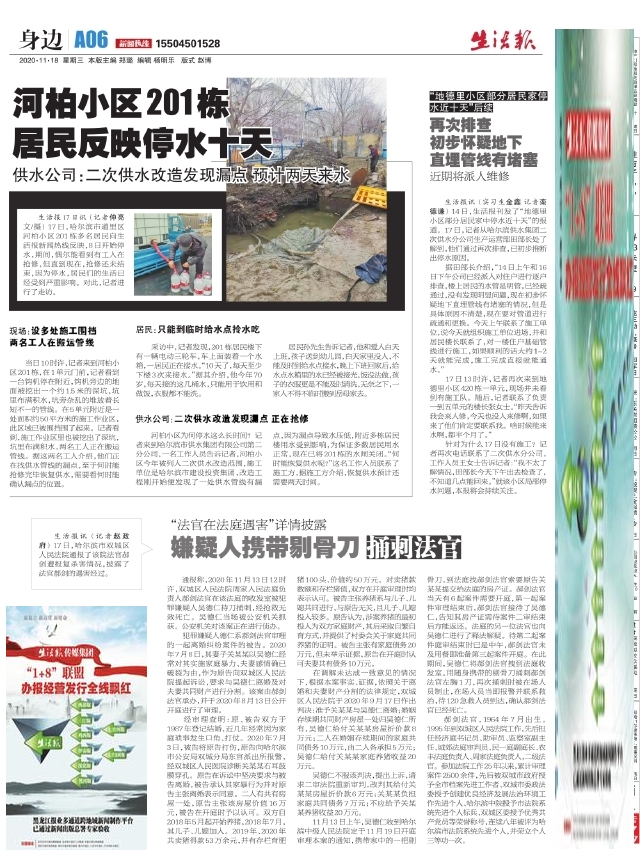 河柏小区201栋居民反映停水十天