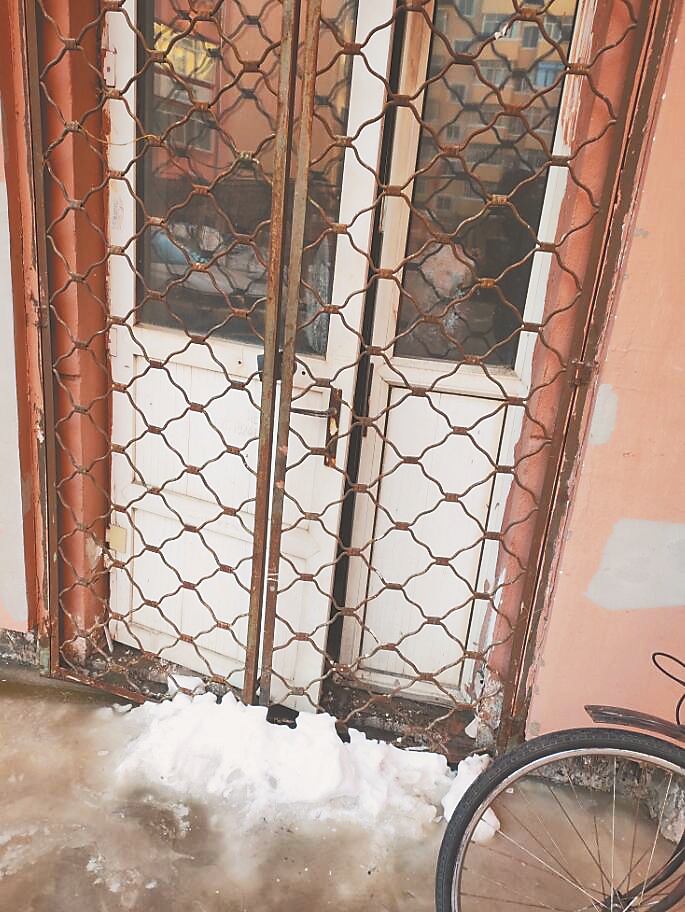 3日,记者来到小区B区,在3号楼下,人行道已经看不见路面了,至少5厘米厚的黄色冰层将路面盖住,堵住三个单元门。小区居民陈先生说:“全都是从一楼的这个门里面出来的水,已经半年了,一直没人管。”记者看到,在两个单元门中间,有一个小门用铁栅栏锁住,从门缝里不停有水流出。记者透过门缝向屋内看是空的。陈先生告诉记者,自己也向物业和社区反映过,但到现在一直没人来处理。