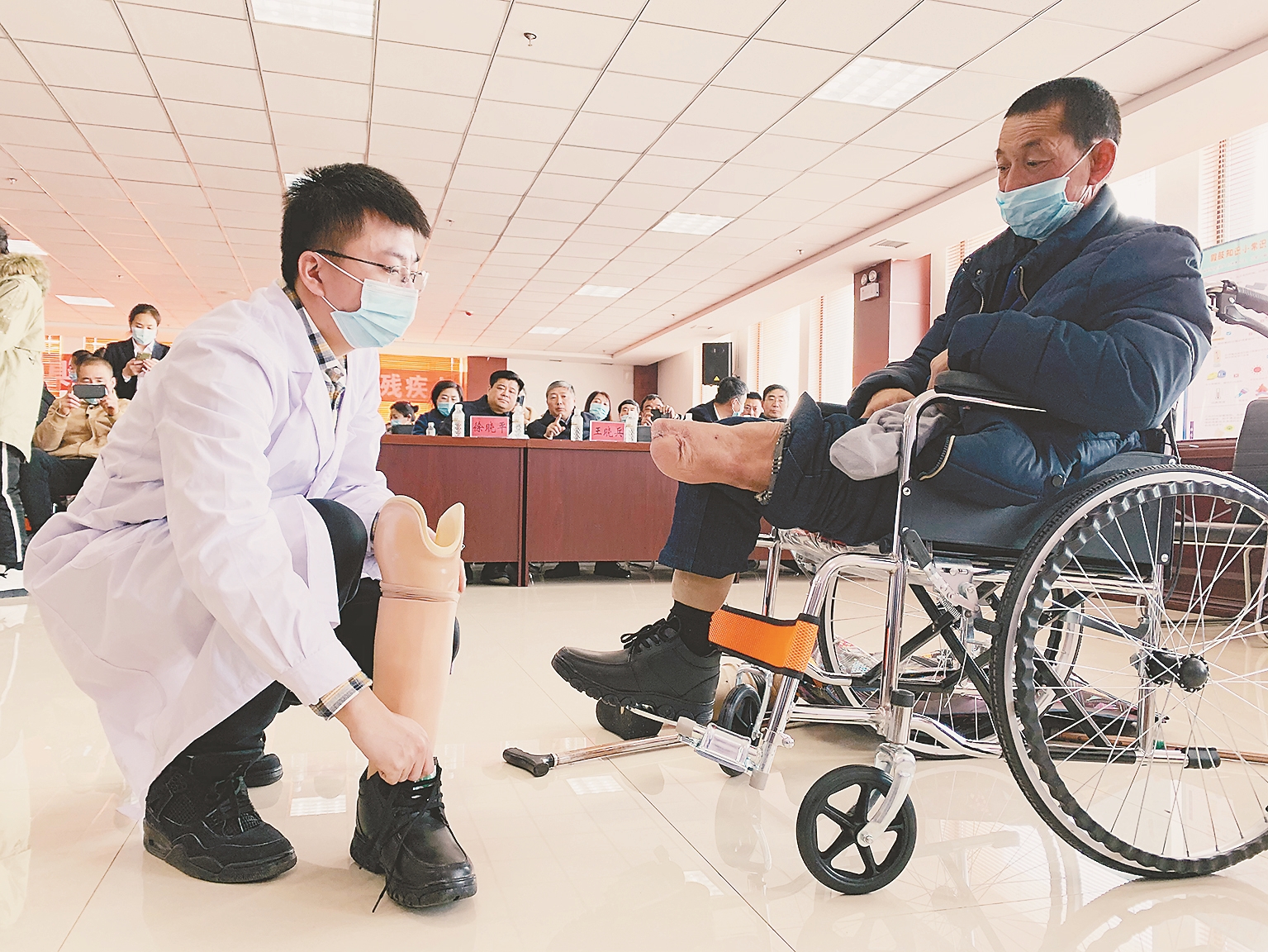 吴文中是兰西县红星乡的残疾人,十一年前因车祸丧失双腿,八年前由残联提供免费的假肢适配。“假肢也需要几年进行更换,今天残联又为我更换了新的假肢,‘新腿’更舒服了,行动也更加便捷。”吴文中说,在适配过程中,省残疾人服务中心工作人员还讲解了辅具的使用方法、康复要领和注意事项。