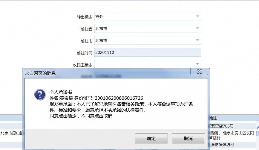 本人姓名: ,身份证号: ,现就读学校,已参加哈尔滨市城乡居民基本医疗保险。本人身份证居住地址为: ,与家乡常住地址:▢相符;▢不符,家乡常住地址为 省(自治区、直辖市) 市。