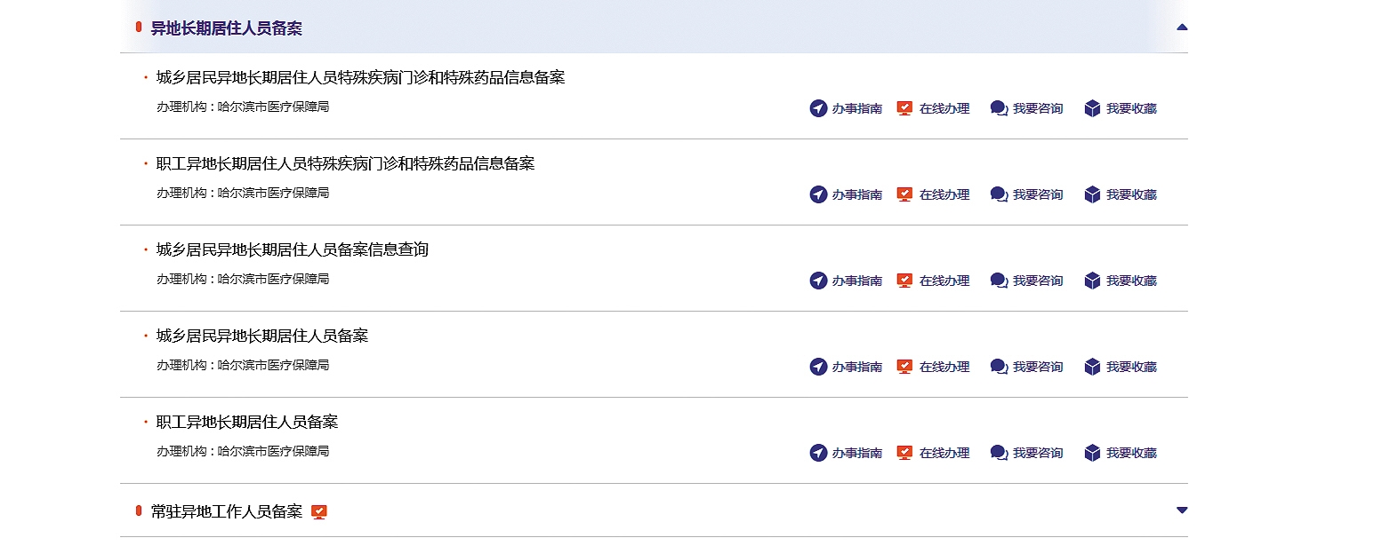 目前,哈市大学生“两城一家”异地就医备案方式为网上办、电话办、临柜办三种方式。下步我们将适时开展以大学生参保信息为基础,系统批量自动进行异地就医备案工作。