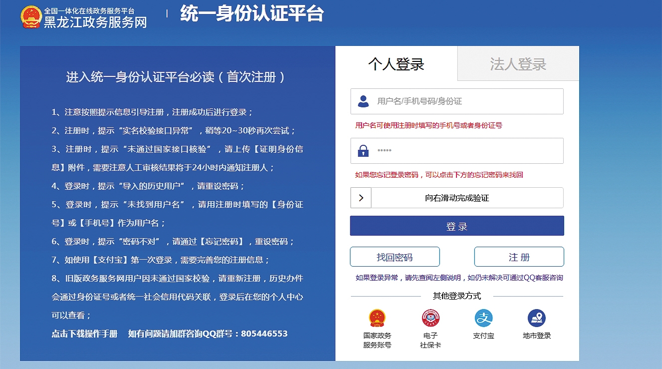大学生注册登录黑龙江政务服务网,点击“统一身份认证”进行备案,具体流程如下: