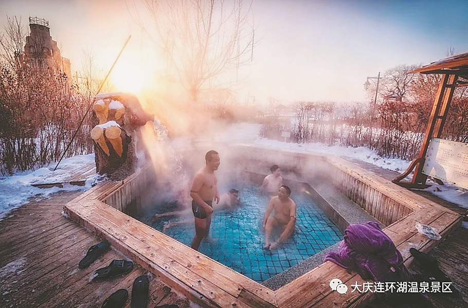 连环湖温泉坐落在烟波浩淼的连环湖畔,是黑龙江省蒙医药学术委员会设立的唯一蒙医药浴基地。冬日的连环湖四周冰天雪地,温泉里却舒爽暖和,泉水与冰雪相遇,气雾氤氲,恍如梦境。在温泉中尽情舒展自己,疲惫的身心在热气腾腾的温润中得到了完全释放,游客还可根据专业医师的指导,加入具有保健功能的蒙药,休闲放松的同时又能保健康体。