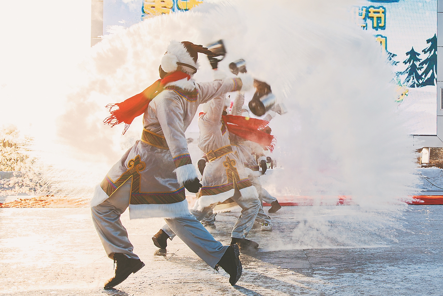 主场活动上,还举行了大型群众式泼水成冰体验活动,市民摆成了“北”字造型,伴着“冬至最北方 泼出好风光”的口号集体泼水成冰,尽展“梦幻北极”的浪漫和神奇。同时,这里也是黑龙江省大兴安岭地区2020年万人泼水成冰表演活动的会场之一。