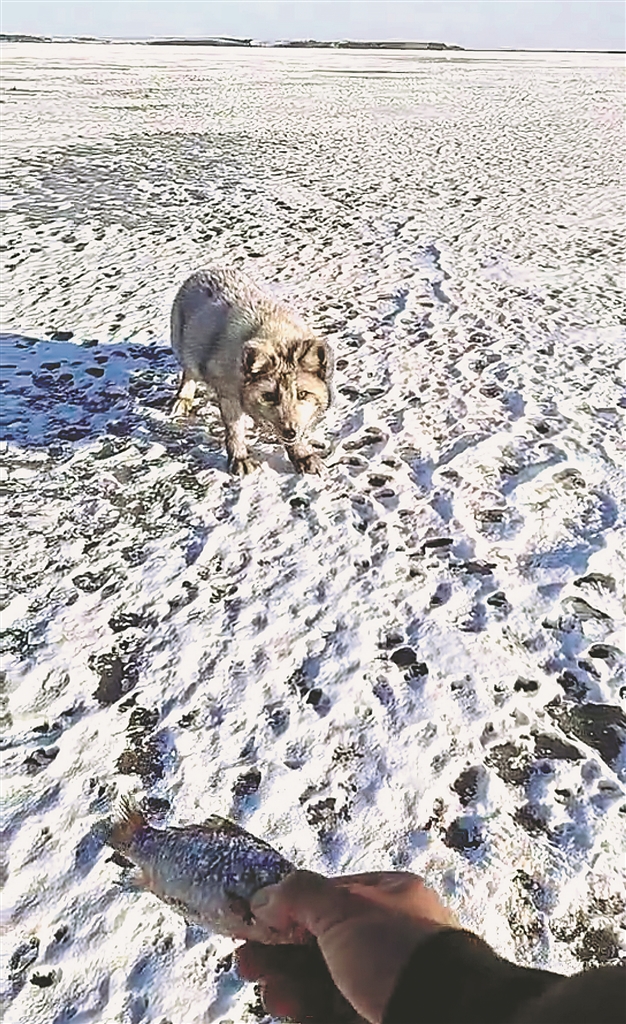 3日,记者与这位村民取得了联系。该村民叫杨海涛,家住嫩江市临江乡江南村,每到冬闲季节就会到江边捕鱼。从上个月开始,杨海涛每次起网时,身边都会出现一位新朋友——小狐狸。这只灰白相间的狐狸会一直观看杨海涛捕鱼。杨海涛试着给小狐狸一条小鱼,这只狐狸几口就吃掉了,后来又给小狐狸扔过去几条相对大一些的,很快又被小狐狸吃光了。杨海涛猜测,小狐狸当时已经很饿了。